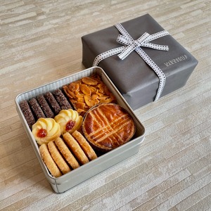 シンプルな缶にギッシリ詰合せた、クッキー缶。