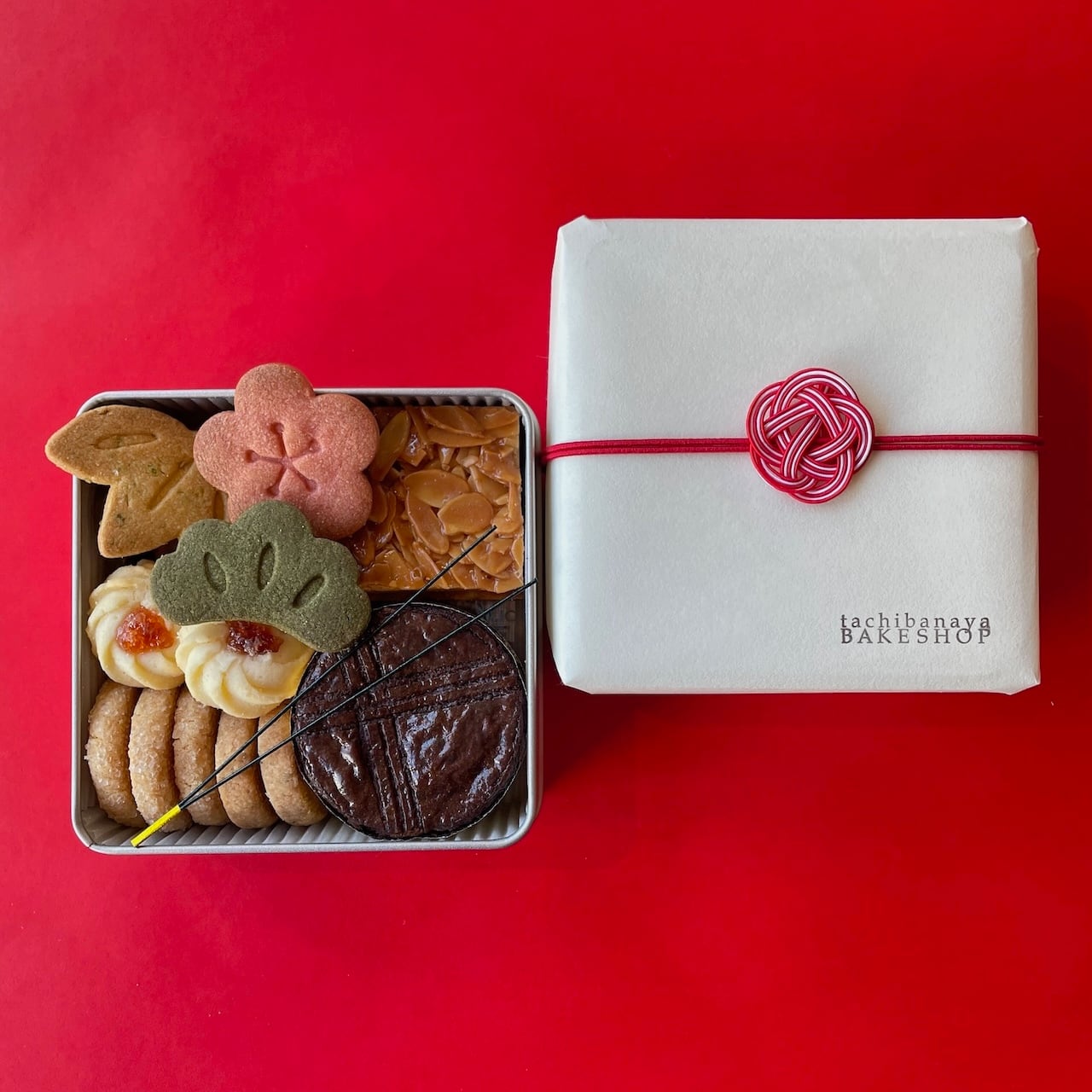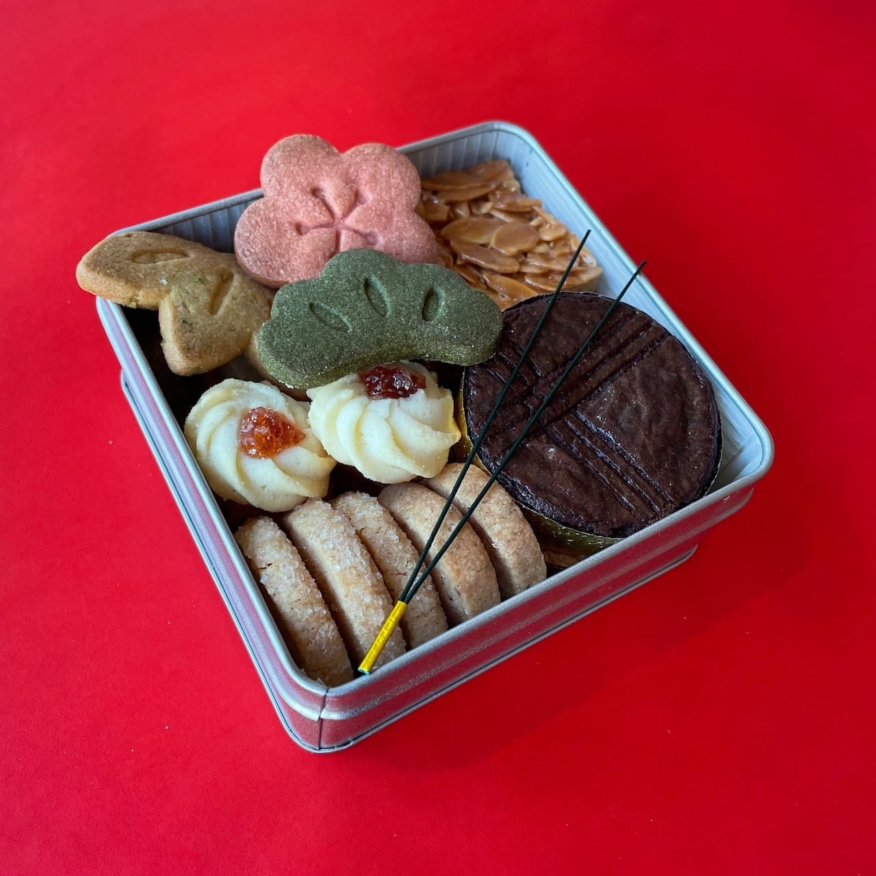 シンプルな缶にギッシリ詰合せた、クッキー缶。お正月限定詰め合わせ&パッケージです。