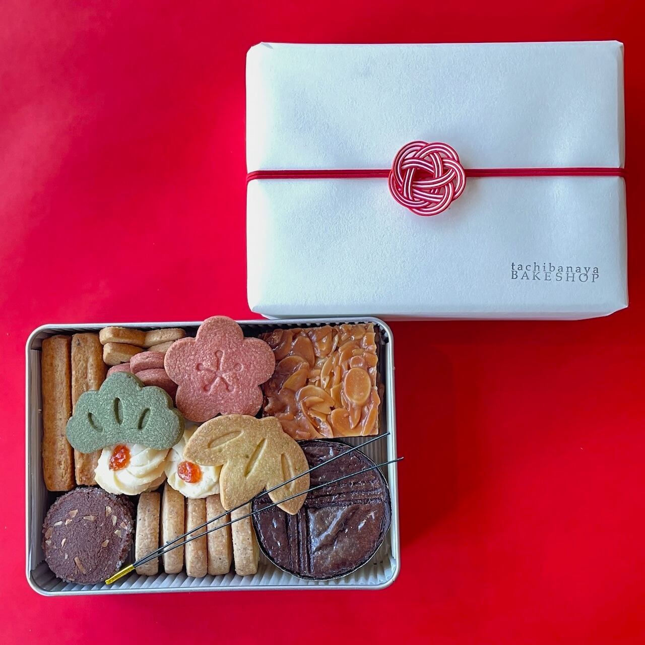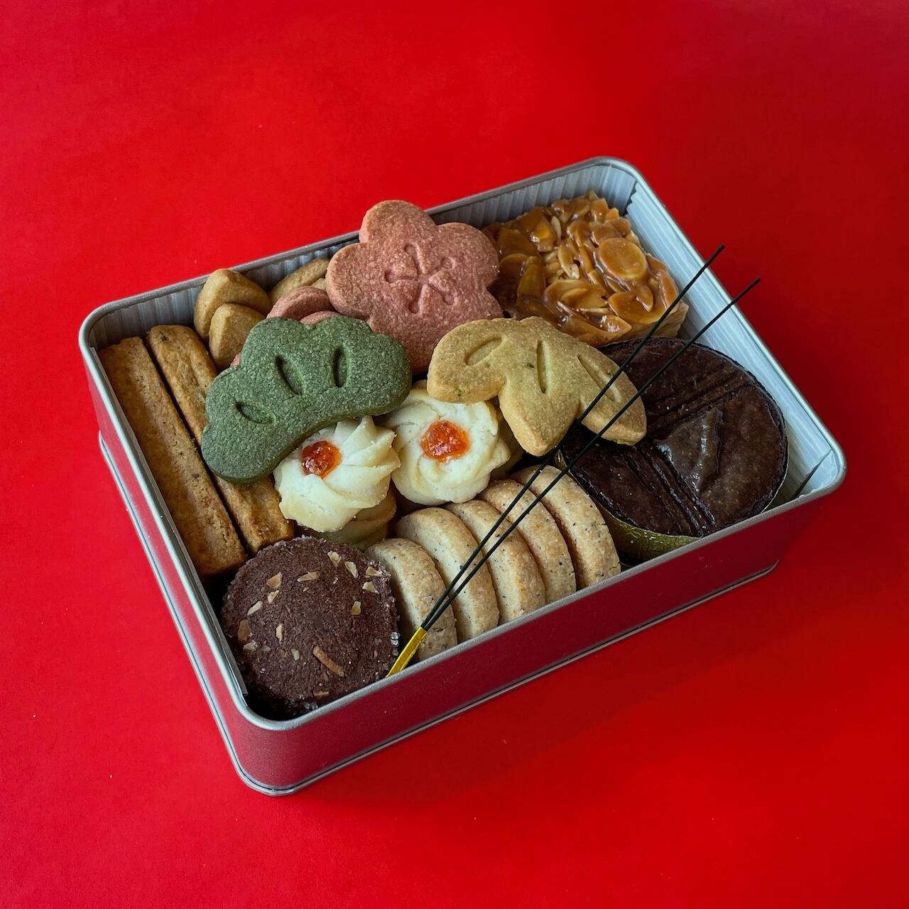 シンプルな缶にギッシリ詰合せた、クッキー缶。お正月限定詰め合わせ&パッケージです。